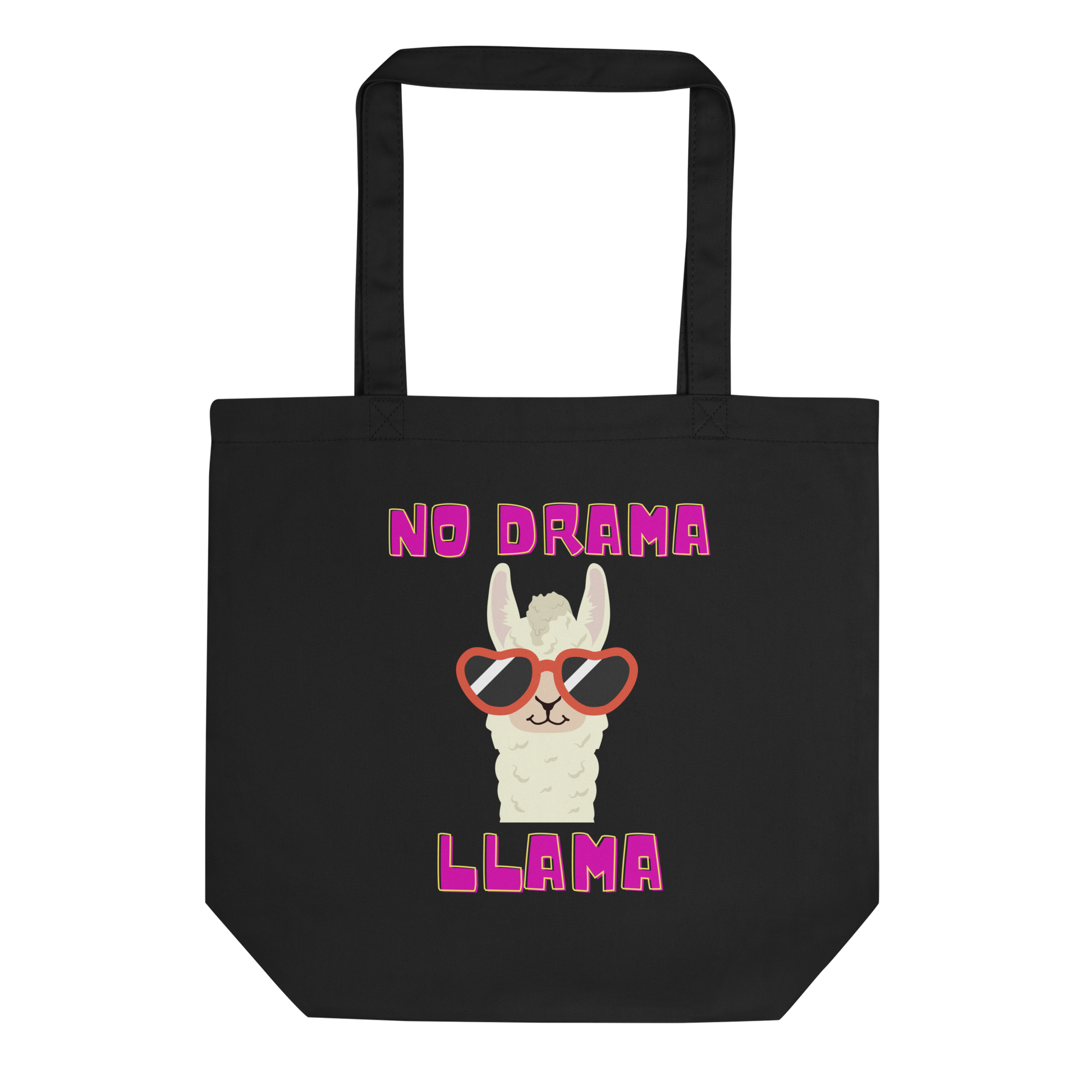 Chic 'No Drama Llama' Black Cotton Tote with Sunglass-Wearing Llama Design