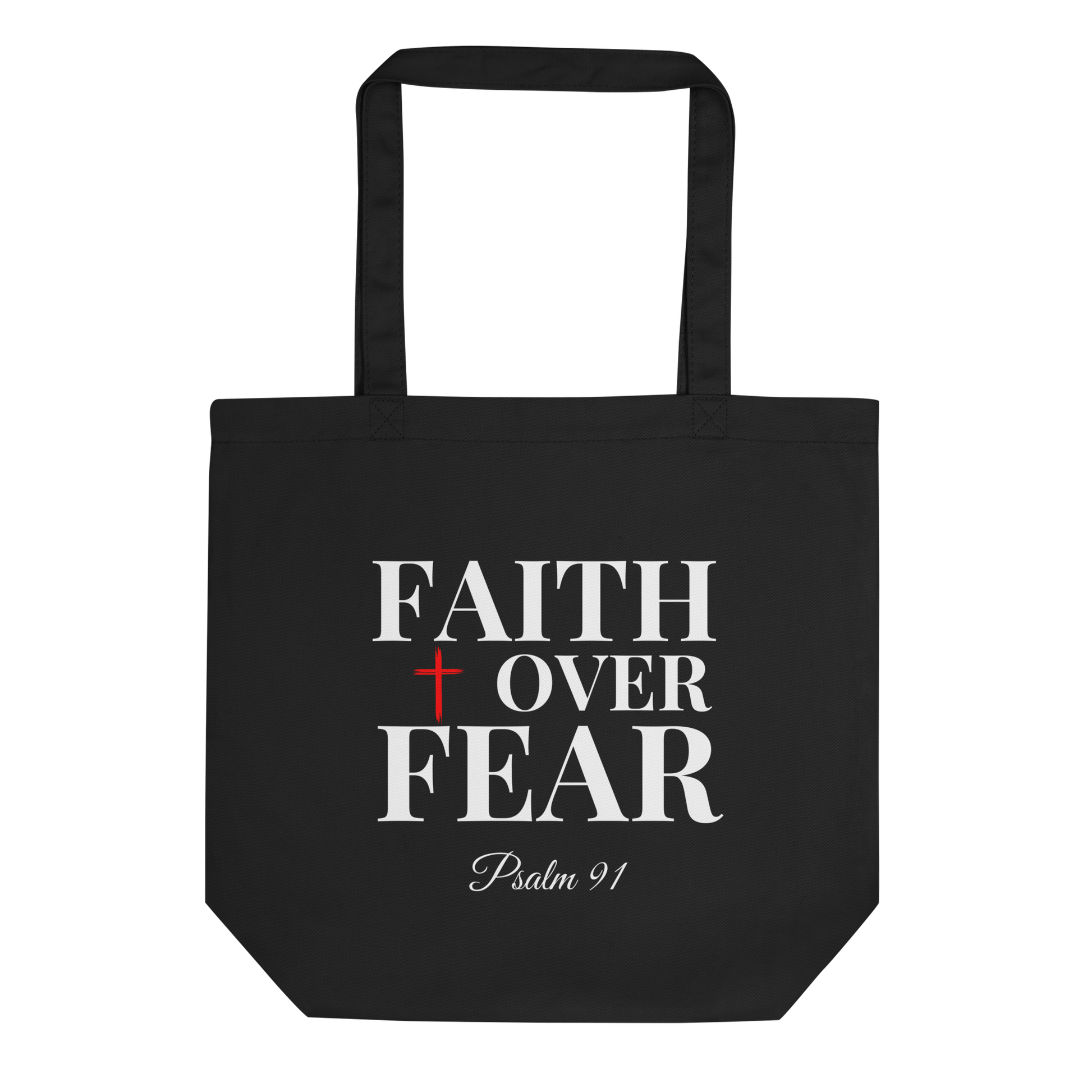 Organic 'FAITH over FEAR' Cotton Tote | Psalm 91 Design | Inspirational Christian Women's Bag