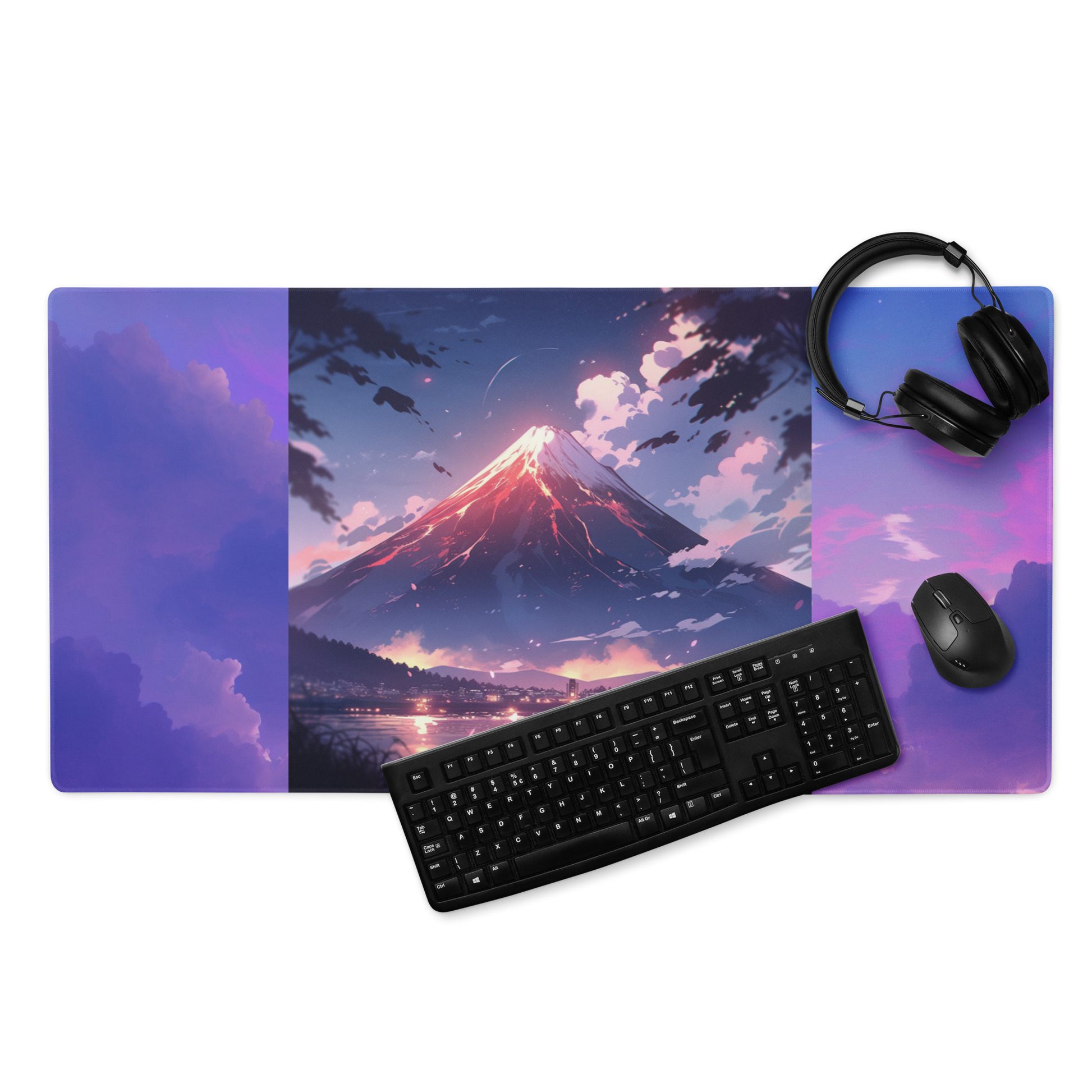 Large 38"x18" Gaming Mouse Pad | Anime-style Mt. Fuji Portrait Design