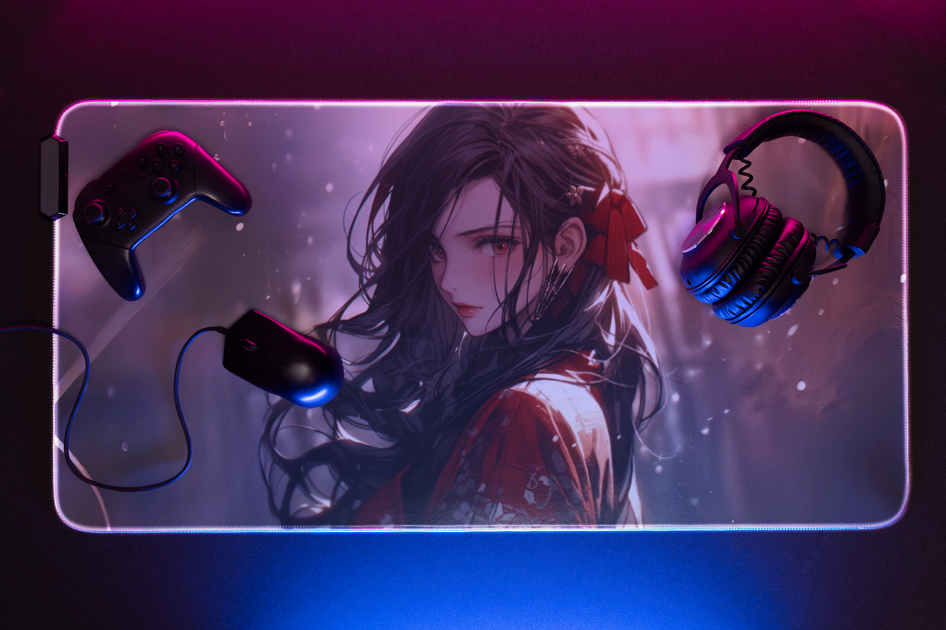 36" × 18" Anime Geisha Gaming Mouse Pad - A Fusion of Gaming Mastery and Anime Beauty
