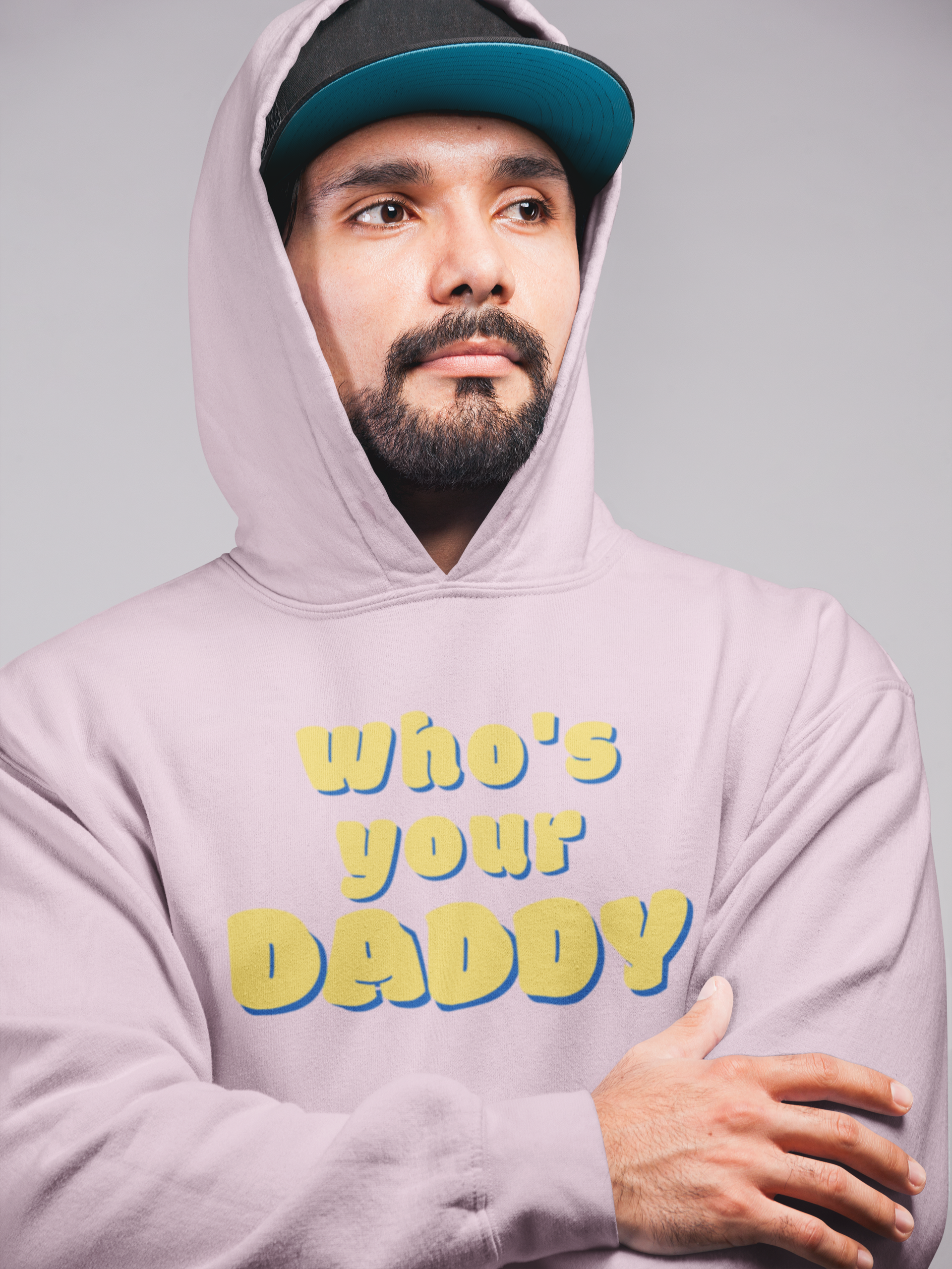 The phrase "Who's Your Daddy?" boldly printed on the front makes a playful and flirtatious reference to your significant other. It's a fun way to assert your confidence and create a sense of intrigue. Whether you're out with friends, running errands, or simply lounging at home, this hoodie is a conversation starter.