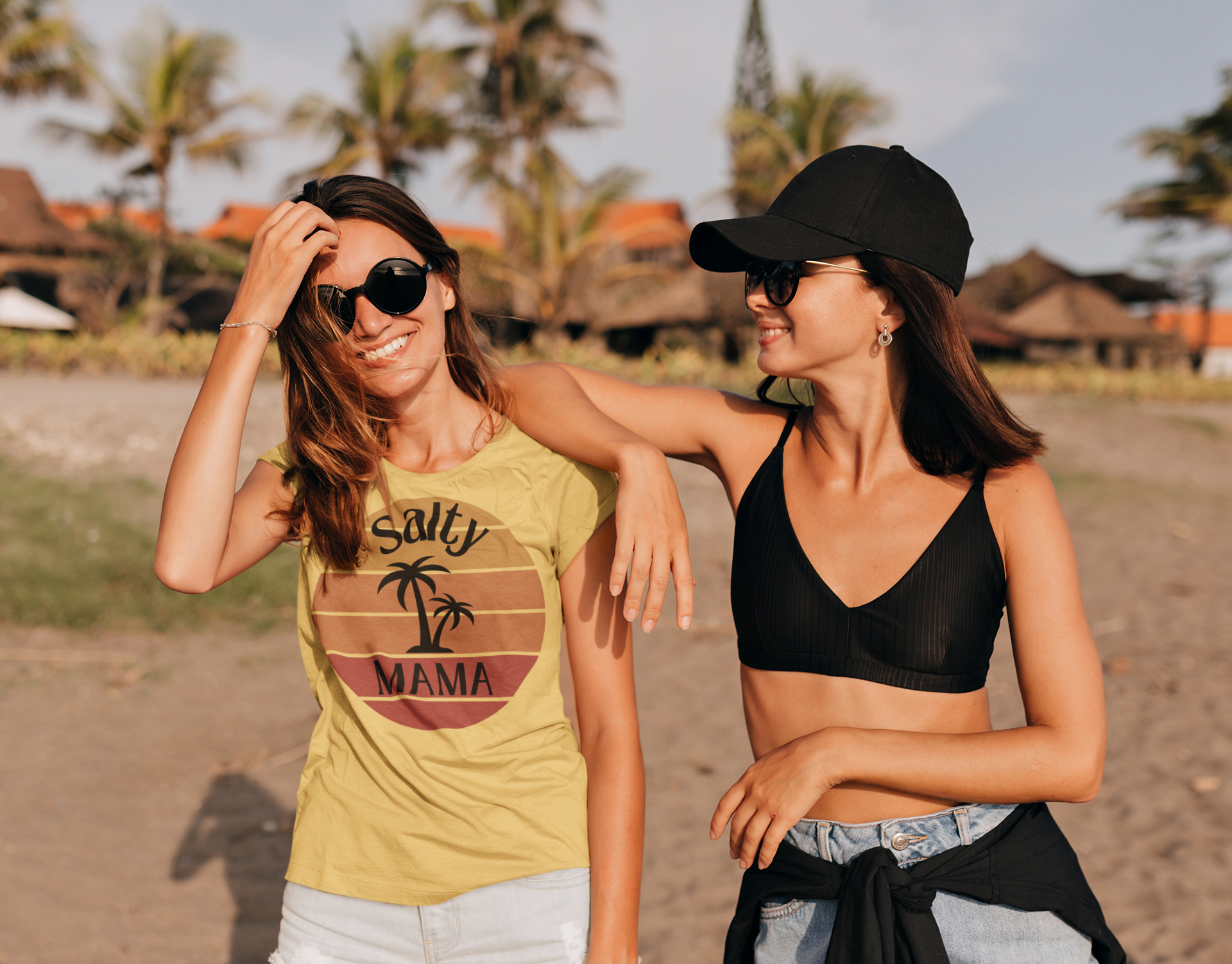 Women's 'Salty Mama' Designer Tee | Retro Beach Sunset & Palm | Stylish Summer Top