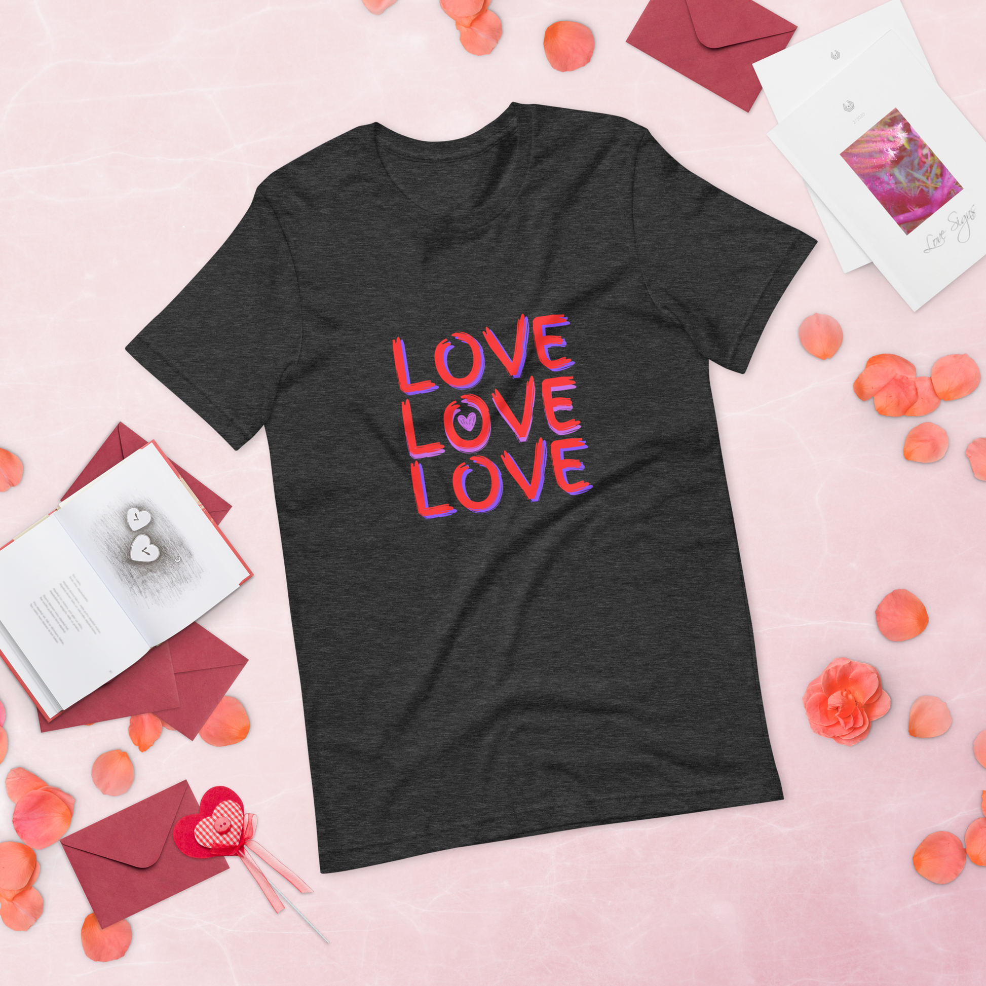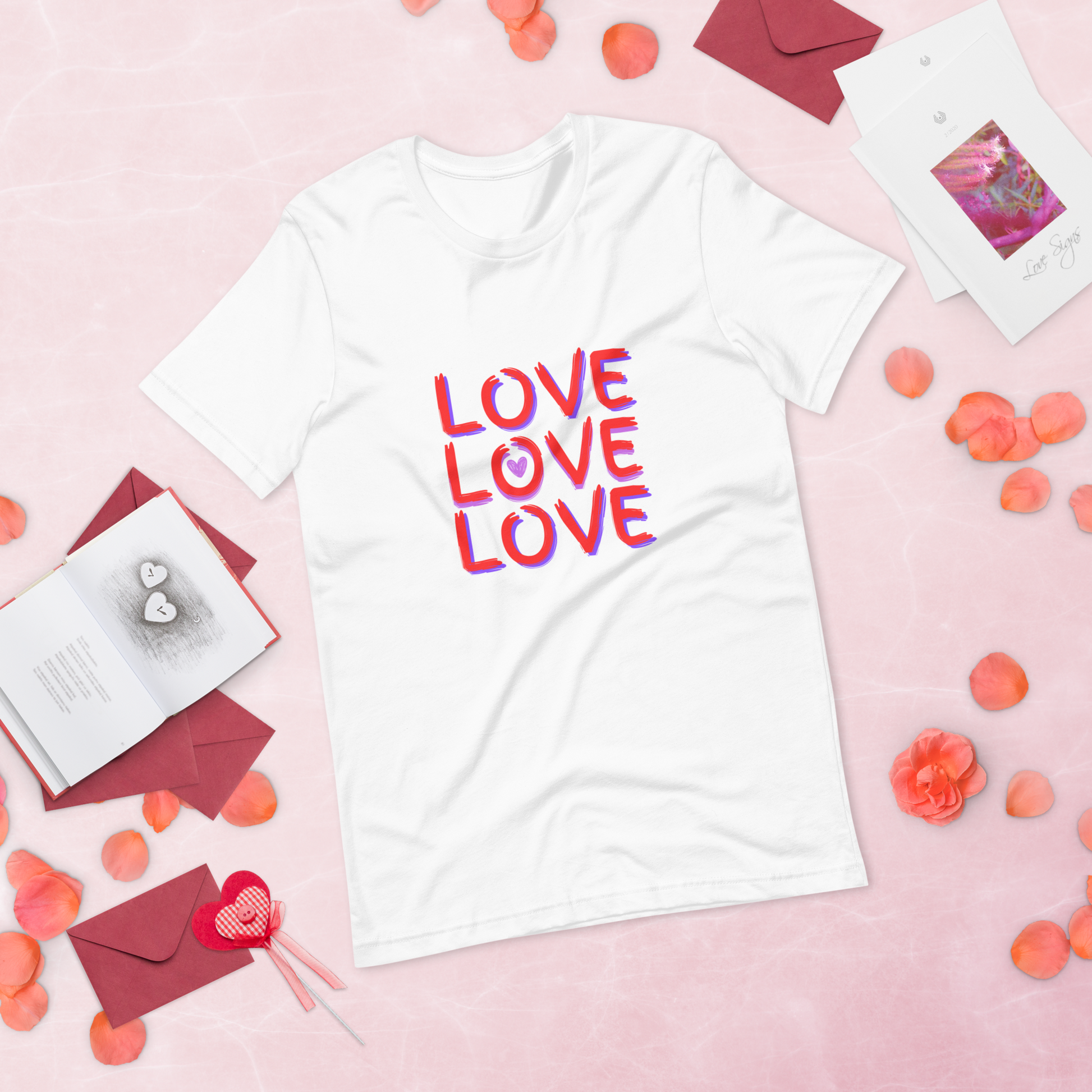 This versatile tee is perfect for any occasion. Whether you're pairing it with jeans for a casual outing or dressing it up with a skirt for a night out, the 'LOVE LOVE LOVE' design adds a touch of positivity and joy to your outfit.