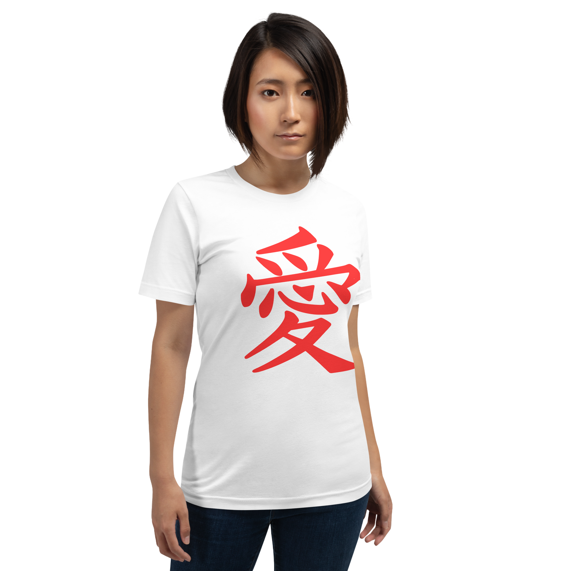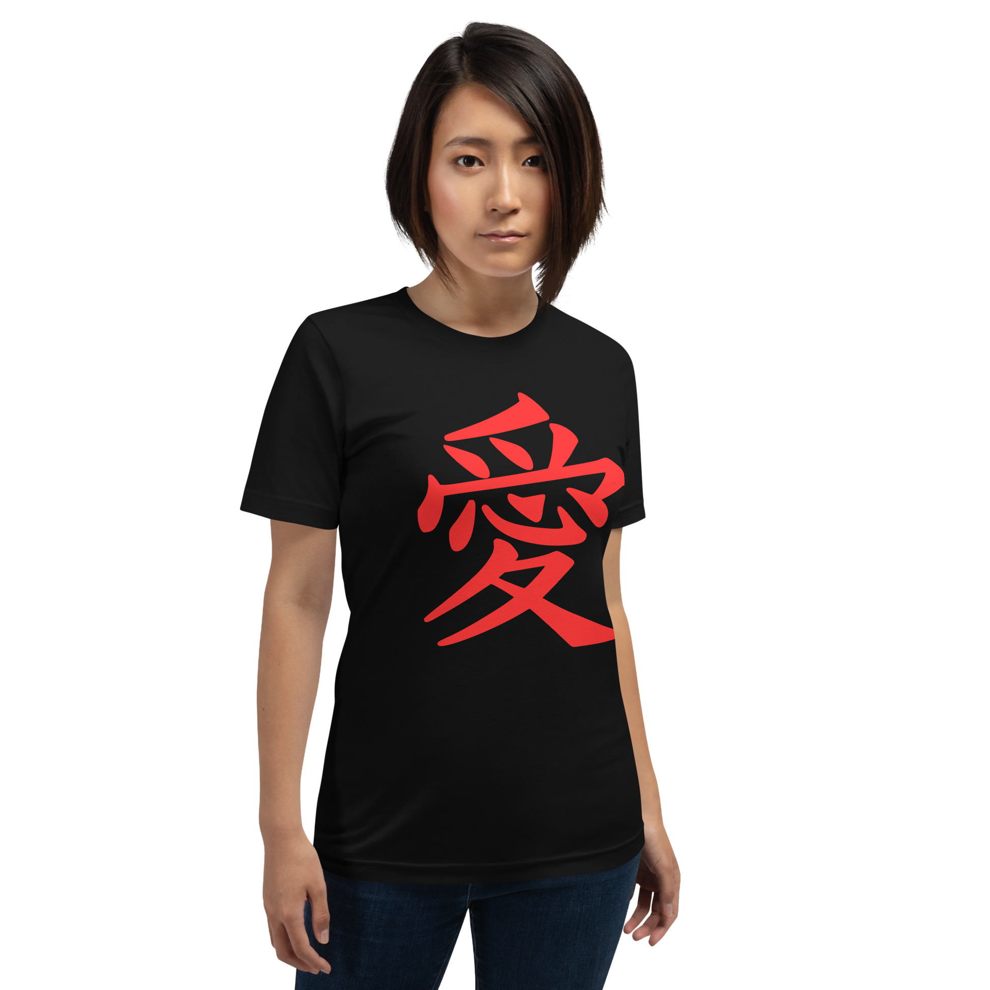 Discover the harmony of fashion and tradition with our designer tee featuring the authentic Japanese Kanji symbol for love. Whether you're showing your appreciation for Japanese culture or expressing a personal sentiment, this tee effortlessly blends style and substance. ❤️🇯🇵👕