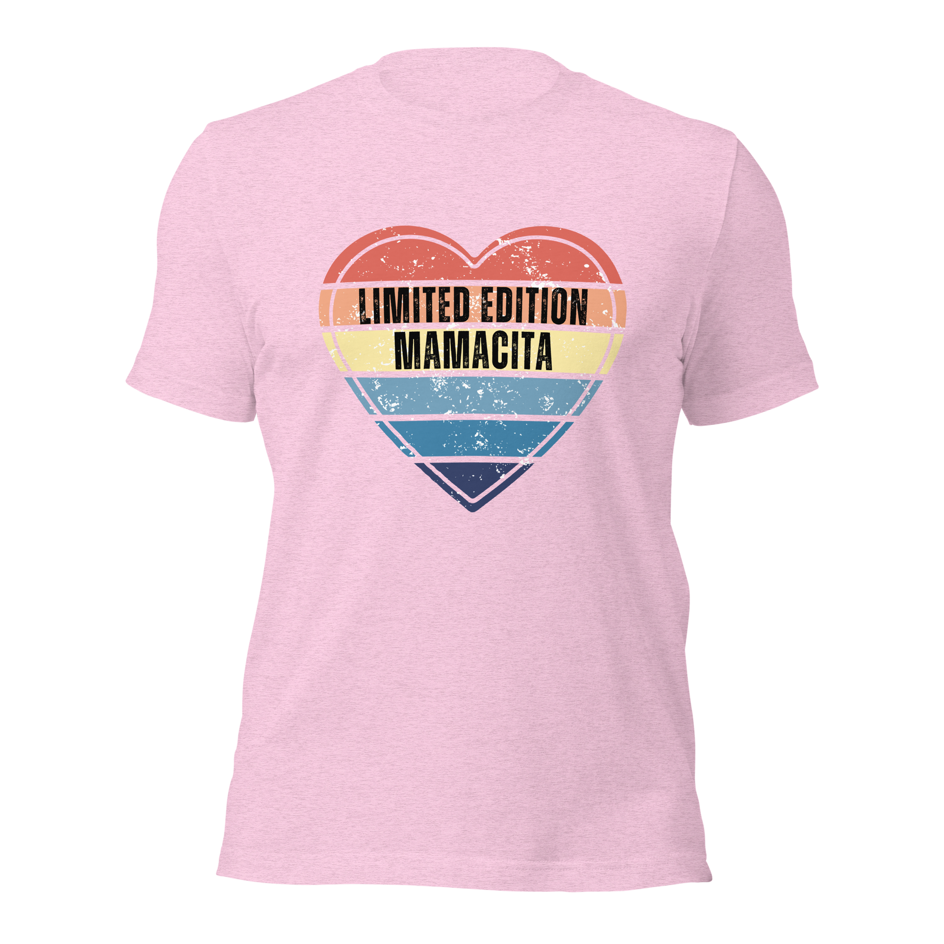 Marrying classic style with contemporary design, this tee features the statement "Limited Edition Mamacita" emblazoned atop a chic retro heart, making it the ideal piece for mamas who love to showcase their flair. Whether paired with jeans, a skirt, or layered under your favorite jacket, this tee is sure to elevate any outfit.