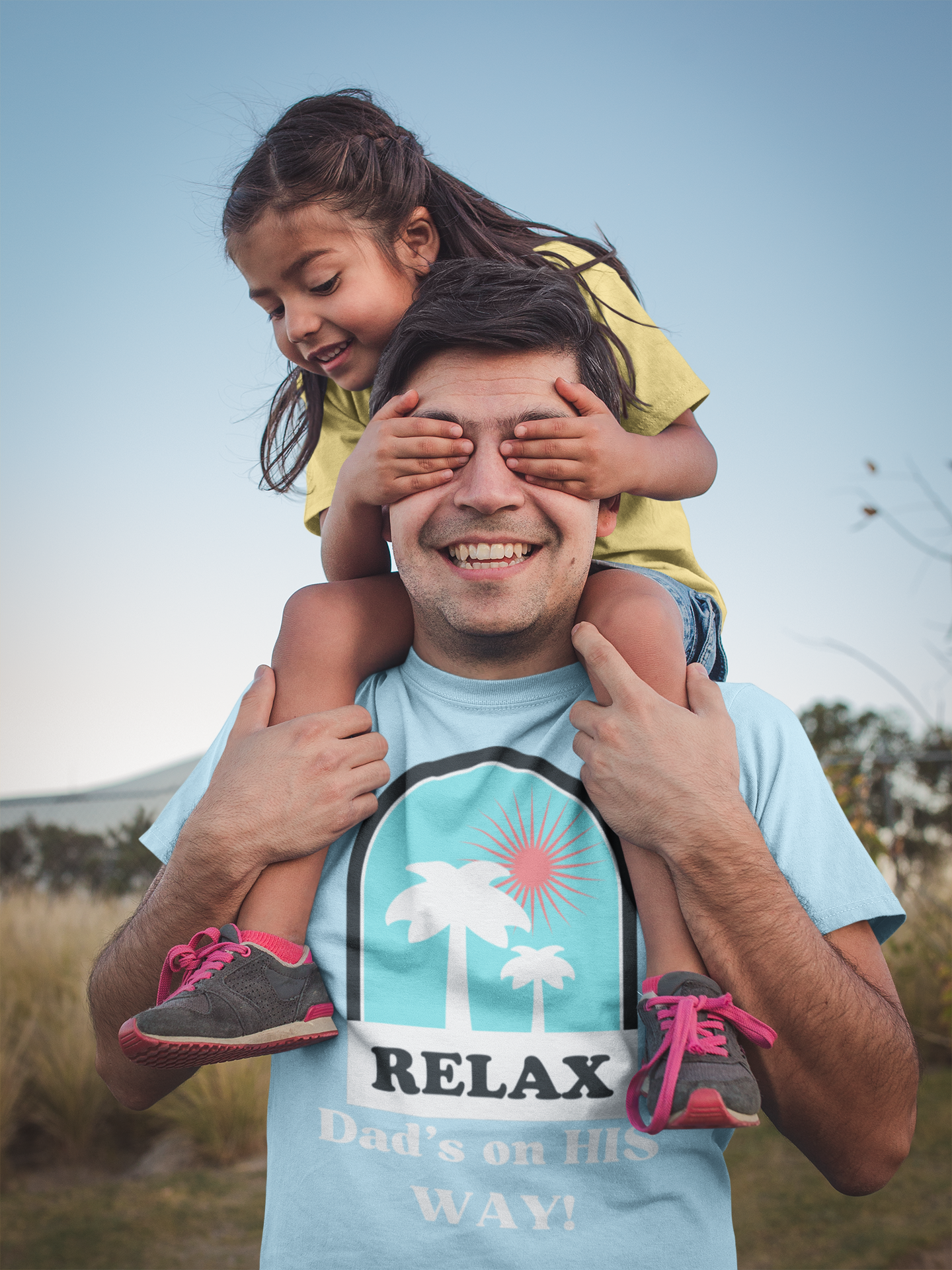 Men's 'RELAX Dad's on his WAY!' T-Shirt | Comforting Retro Sunset Palms