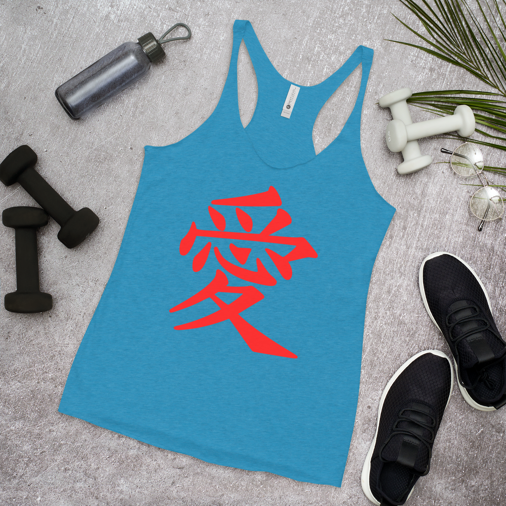 Women's Racerback Tank with Japanese Kanji: Embrace Love in Every Move ❤️